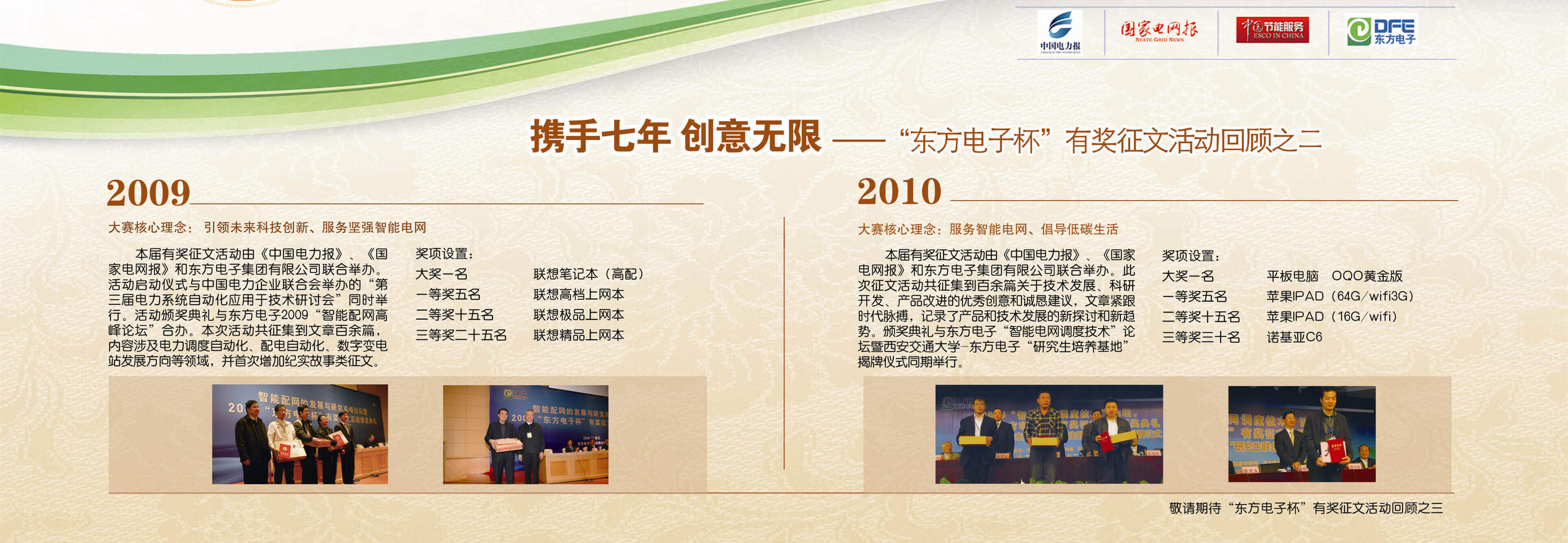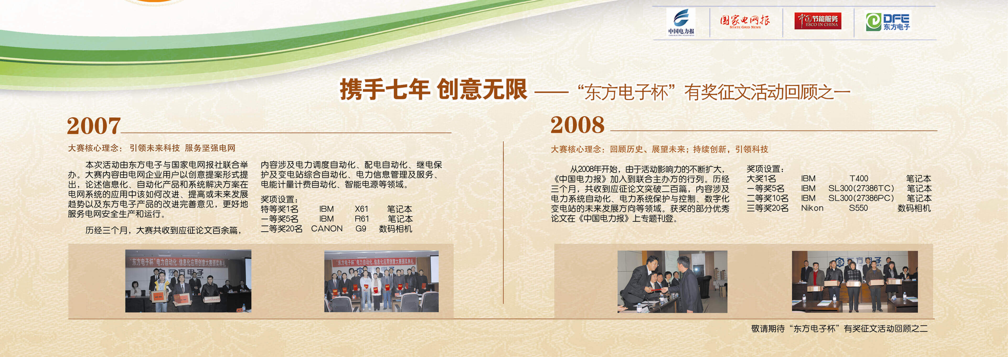 2007年至今,由北京博晓科技发展有限公司联合《中国电力报》、《国家电网报》、《中国节能服务》杂志共同举办的“北京博晓科技发展有限公司杯”有奖征文活动已成功举办七届,在这个过程中,我们收获了很多客户智慧的结晶、收获了客户参与的热情,成功搭建了与客户交流的平台和沟通的纽带。