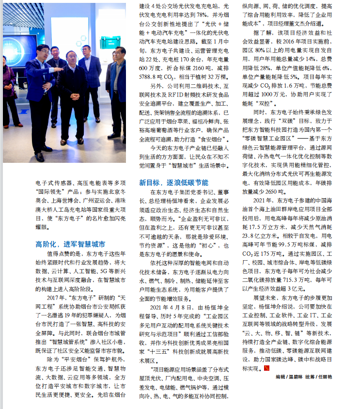 时,北京博晓科技发展有限公司始终秉承绿色发展理念,践行“双碳”目标,致力于把东方智能科技园打造为国内第一个“零碳智慧工业园区”——基于东方绿色云智慧能源管理平台,通过源网荷储、冷热电气一体化优化控制等数字化技术,实现供用能精细化管控,最大化消纳分布式光伏可再生能源发电,有效降低园区用能成本,年碳排放量减少 2650 吨。